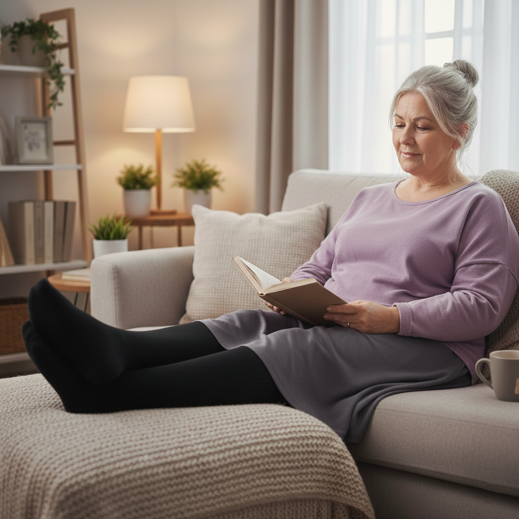 Załóż je rano i poczuj różnicę — są dopasowane, ale nie ciasne, zapewniając mniej bólu, redukcję obrzęków i więcej energii przez cały dzień.